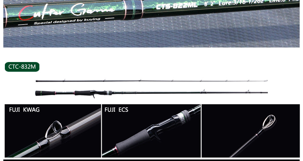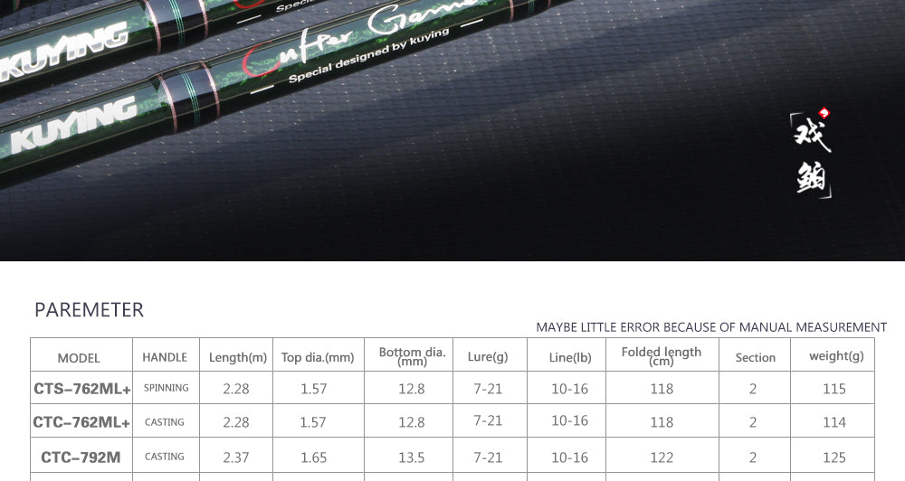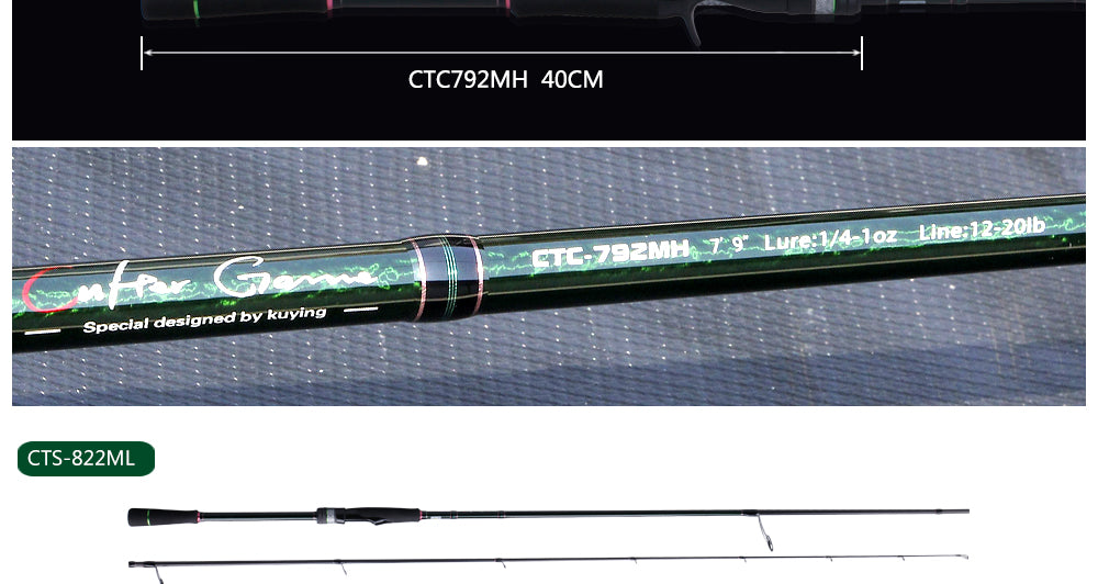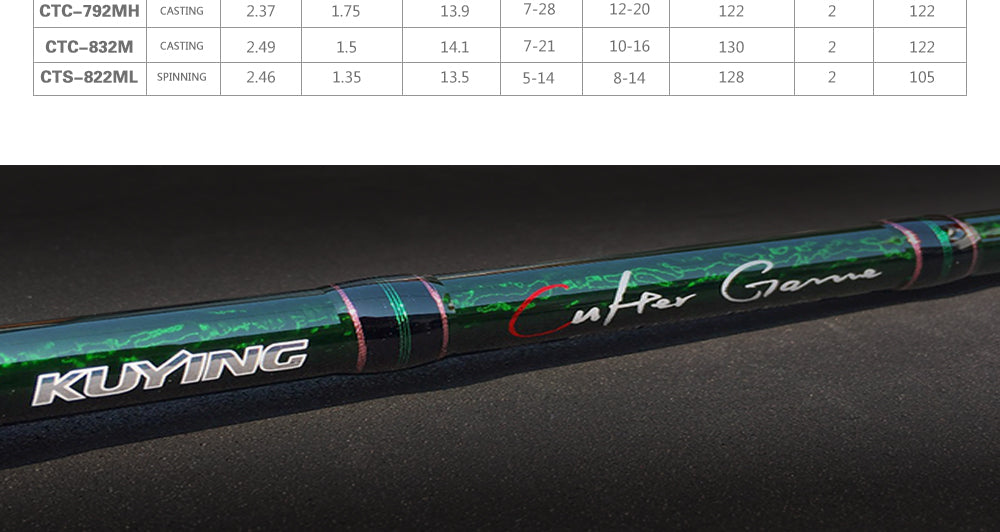KUYING CULTER GAME 2.28m 2.37m 2.46m 2.49m 2.58m Spinning Casting Fishing Lure Rod Fish Cane Stick Pole Carbon Medium light hard